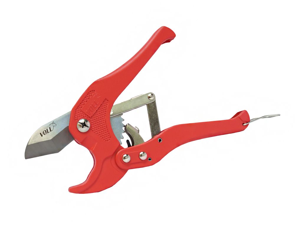 Ножницы VOLL V-Blade 42 используются для точной резки одной рукой труб из ПЭ, РЕ-Х, ПП, ПБ, ПВДФ и металлопластиковых труб Ø до 42 мм. За счет эргономичных рукояток удобно держать в руке. Благодаря храповому механизму обеспечивается прямой и точный рез при минимальных усилиях.