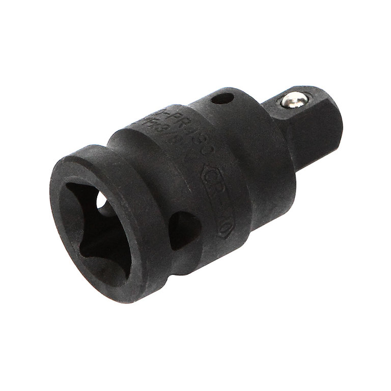 Переходник ударный Licota AAD-PR430, со сменным квадратом и шариковым фиксатором. Применяется для передачи крутящего момента на торцевые головки от пневматического или электрического инструмента ударного действия.