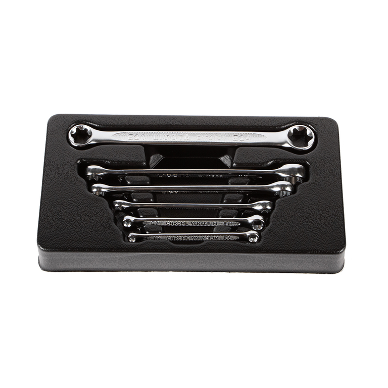 Набор разрезных ключей E-профиля Licota ACK-274011. Комплект из 6 предметов с двумя рабочими профилями.