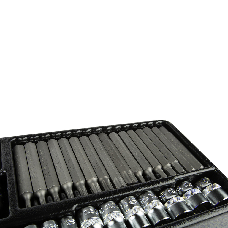 Набор вставок и головок, Е-профиль, 83 предмета, в ложементе, Licota ACK-384003 - большой набор торцевых головок и бит для работы с крепежом с наружным профилем TORX и с внутренними профилями PH, PZ, HEX, Torx, SL, Spline (XZN).