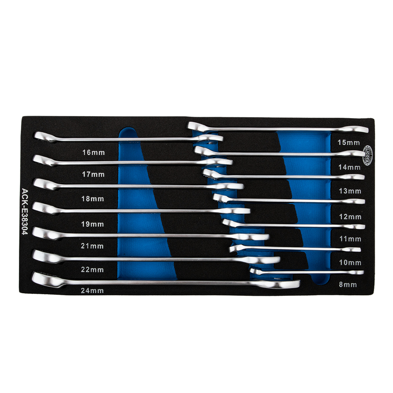 Размеры ключей: 8-24 мм. Комплект поставляется в ложементе из вспененного каучука (EVA).