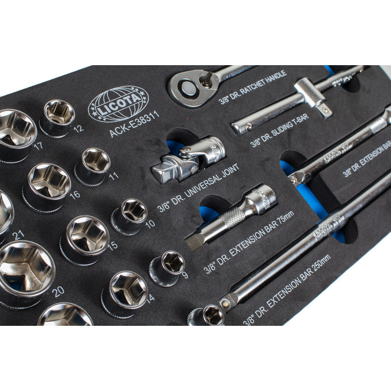 Набор торцевых головок с аксессуарами Licota ACK-E38311 из хром-ванадиевой стали предназначен для ручного монтажа/демонтажа резьбового крепежа. Содержит полный размерный ряд без пропусков в диапазоне 8-22 мм.