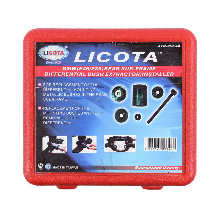 Приспособление для замены сайлентблоков подушки редуктора заднего подрамника Licota ATC-2053A для автомобилей BMW. Предназначено для замены сайлентблоков подрамника заднего дифференциала без его демонтажа.