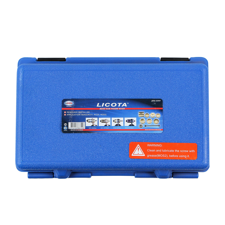 Приспособление для замены сайлентблоков передних нижних рычагов Licota ATC-2204 для автомобилей Mercedes-Benz. Предназначен для снятия и установки сайлентблоков подрамников автомобилей с моделями кузова W171, W203, W209, W211.