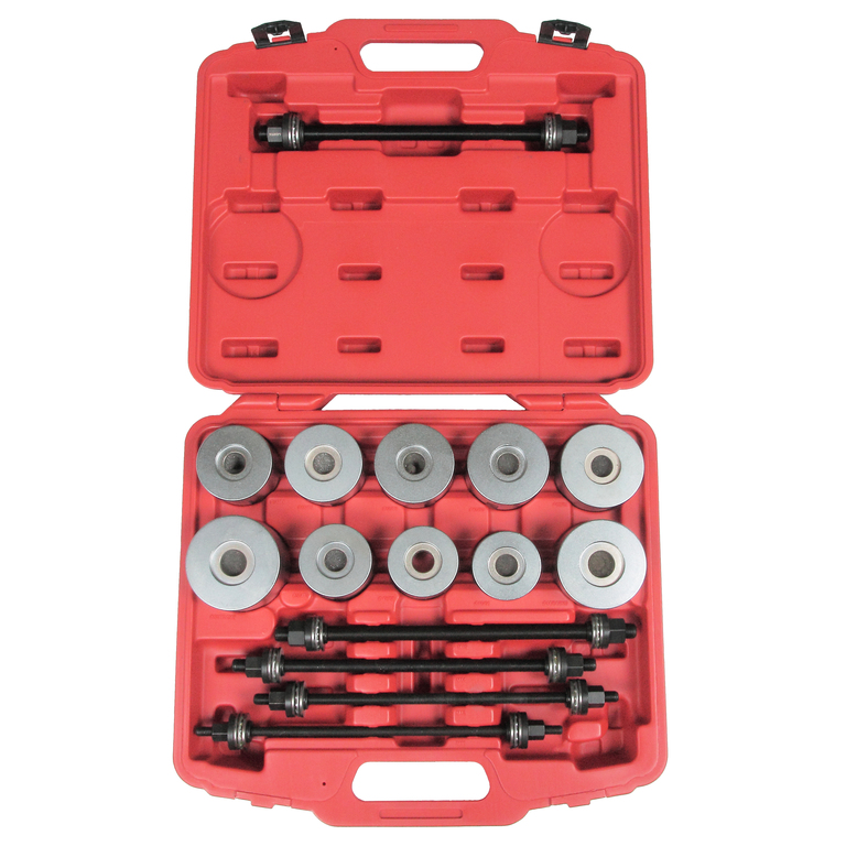 Набор укомплектован оправками актуальных размеров для работы с деталями зарубежных и отечественных автомобилей. Комплект позволяет снимать и устанавливать детали, не прибегая к дополнительным наборам оправок.