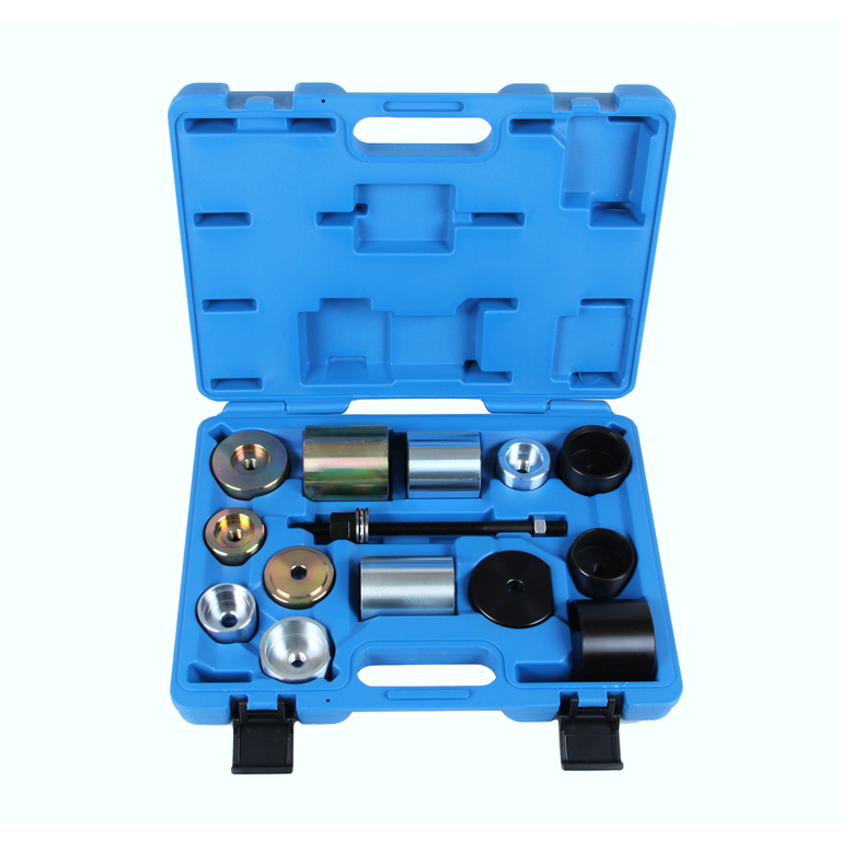 Набор для замены сайлентблоков Licota ATC-3201 применяется для монтажа и демонтажа сайлентблоков рычагов задней подвески и для запрессовки шаровых шарниров на автомобилях BMW.