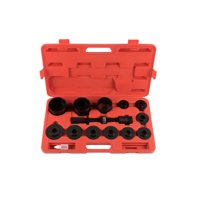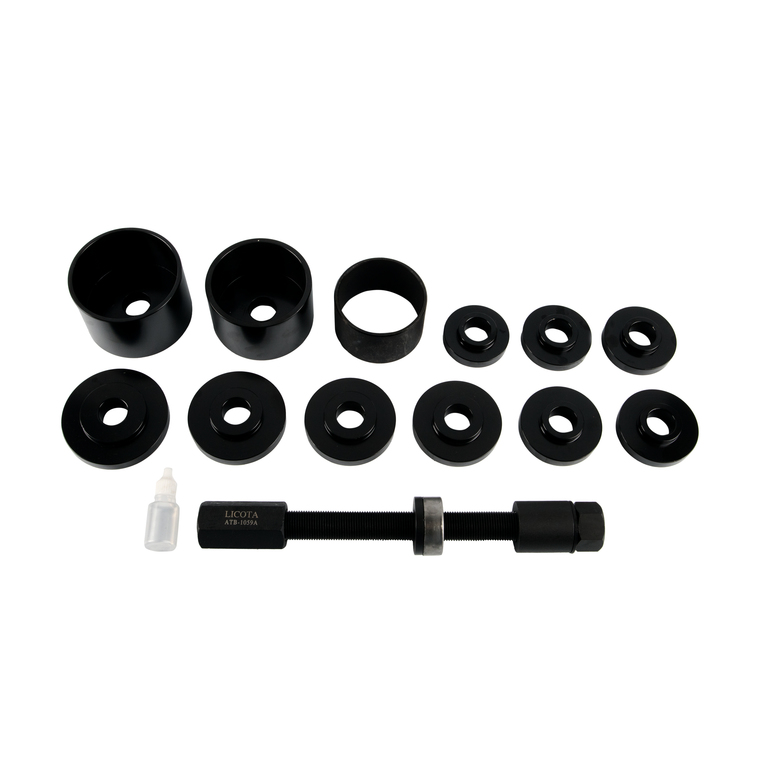 Набор приспособлений, позволяющий заменить ступичный подшипник без демонтажа поворотного кулака или амортизационной стойки.