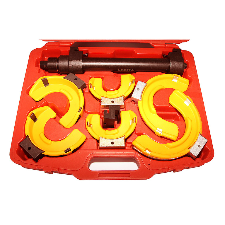 Универсальная стяжка пружин для подвески типа «Макферсон» Licota ATC-2158C способна сжимать нестандартные пружины. К примеру, пружины с малым количеством витков, пружины бочкообразной формы и др.