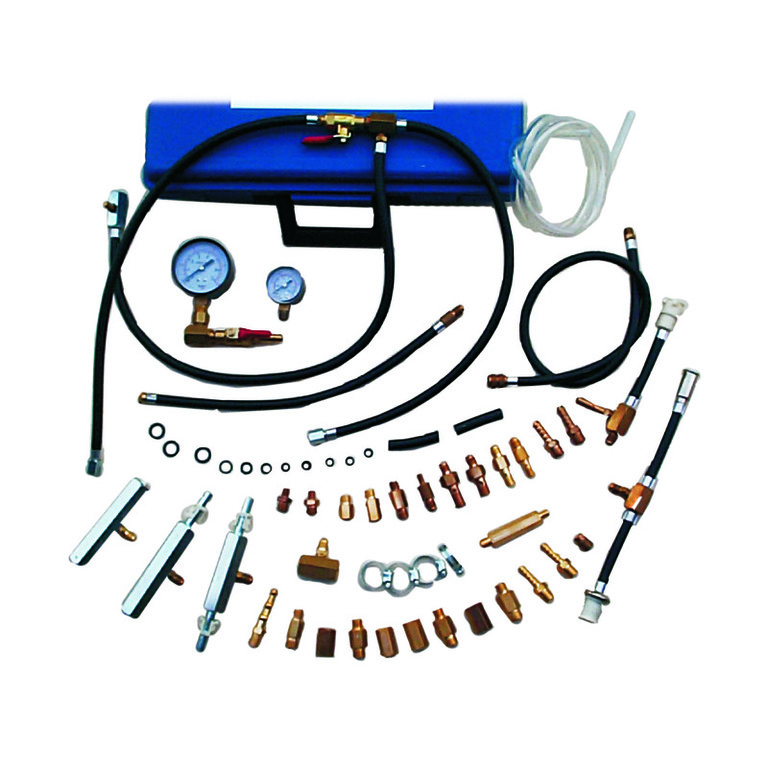 Комплект из 29 предметов в пластиковом кейсе позволяет выявить повреждение топливной магистрали, топливного фильтра, топливного насоса и регулятора.