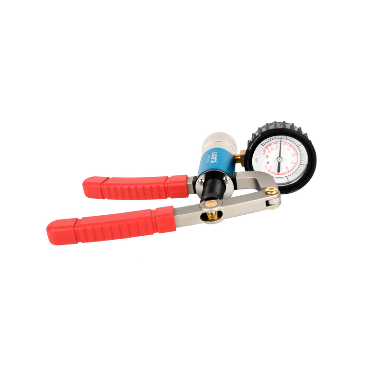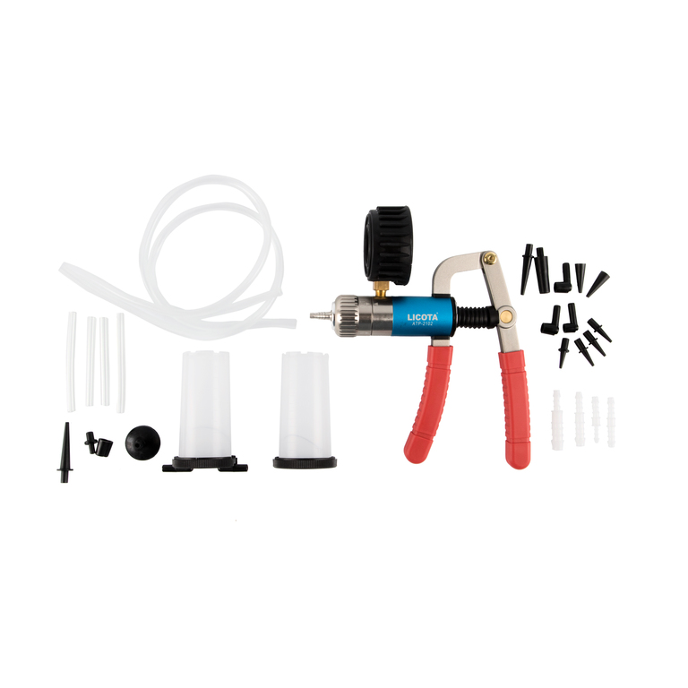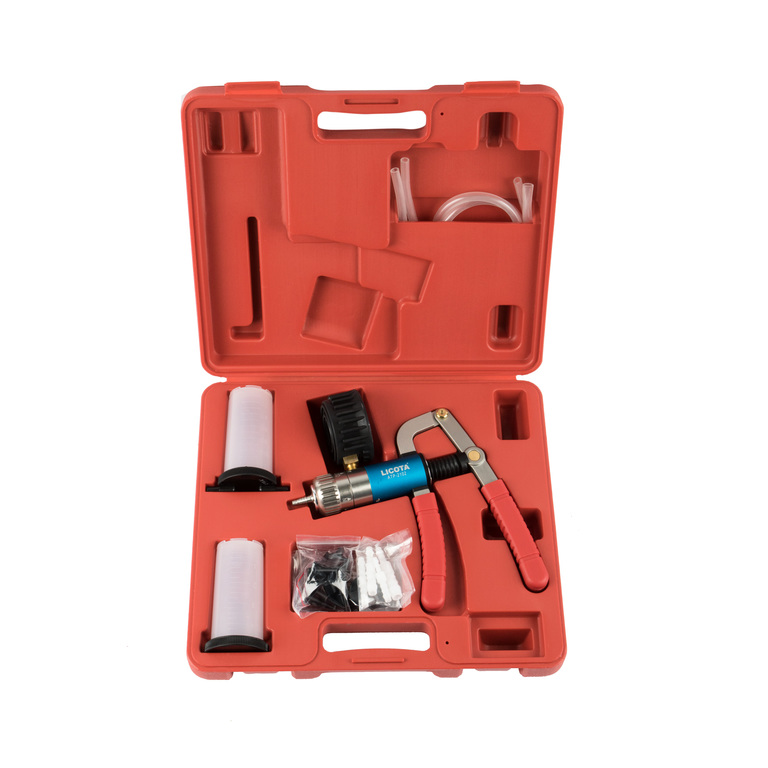 Комплект из 27 предметов в пластиковом кейсе позволяет создавать разрежение или давление при проверке вакуумных или пневматических актуаторов.