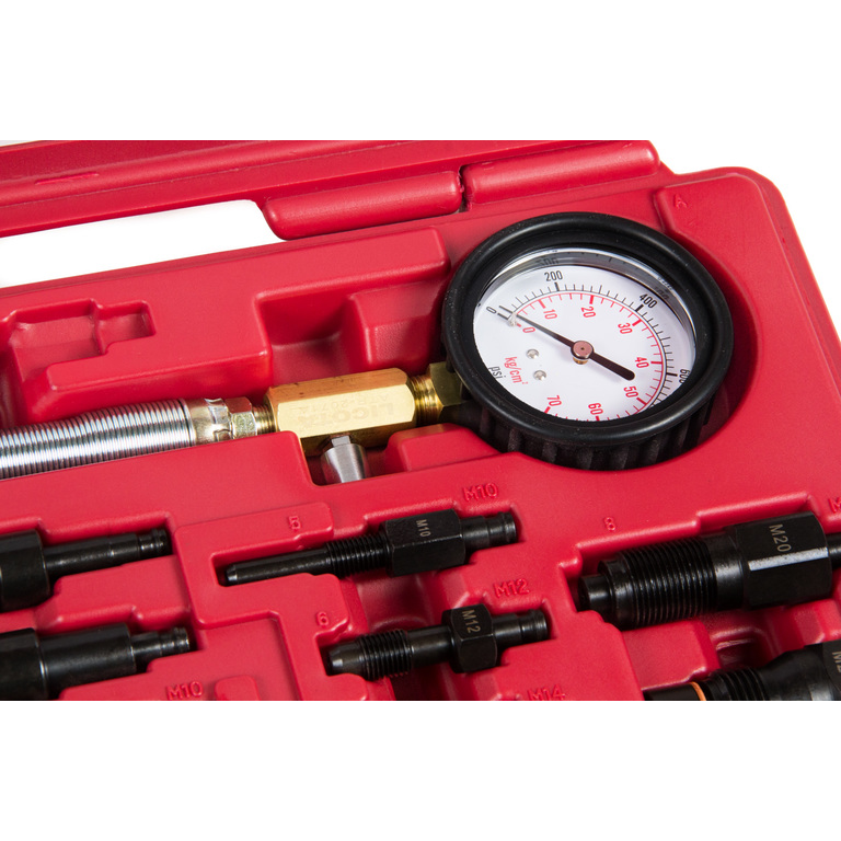 Компрессометр профессиональный дизельный Licota ATP-2071A для легковых автомобилей. Набор из 10 предметов для измерения компрессии дизельных двигателей легковых и легких коммерческих автомобилей с непосредственным впрыском и дизелей с предкамерой.. Позволяет диагностировать герметичность камеры сгорания путем измерения компрессии (максимального давления воздуха) в камере сгорания в конце такта сжатия.