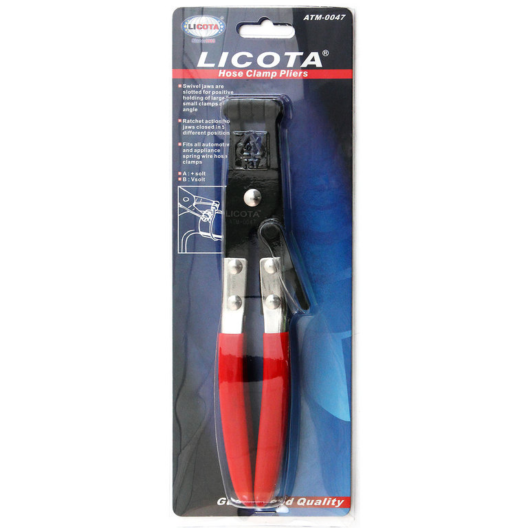 Предназначены для работы с многоразовыми самозажимными пружинными хомутами топливных, масляных и водяных шлангов. Поворотные губки обеспечивают доступ к труднодоступным хомутам. Трещоточный механизм с 5-ю положениями позволяет зафиксировать хомут в разжатом состоянии. Губки клещей имеют прорези формы "+".