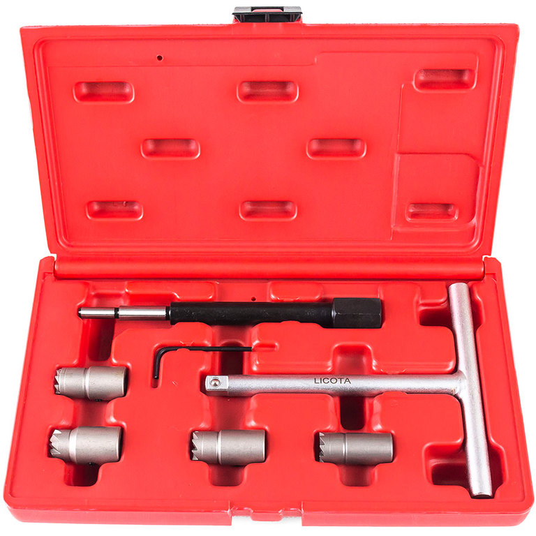Набор для чистки посадочных мест дизельных форсунок Licota ATA-1402 позволяет очистить и обновить посадочные колодцы форсунок в головке блока дизельного двигателя, и получить правильную поверхность посадочного колодца форсунок.