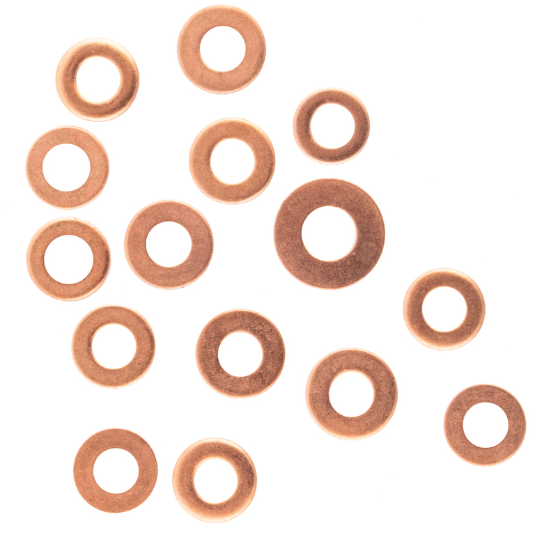 Набор медных шайб Licota ATA-3690 используется при замене форсунок дизельных двигателей. При установке форсунок необходимо устанавливать новые уплотнительные шайбы, что позволяет избежать потери герметичности и образования нагара на распылителе.