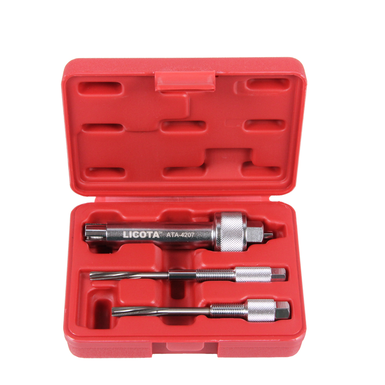 Набор для снятия свечей накаливания Licota ATA-4207 применяется для демонтажа свечей накаливания и очистки посадочных мест на дизельных двигателях Mercedes-Benz CDi.