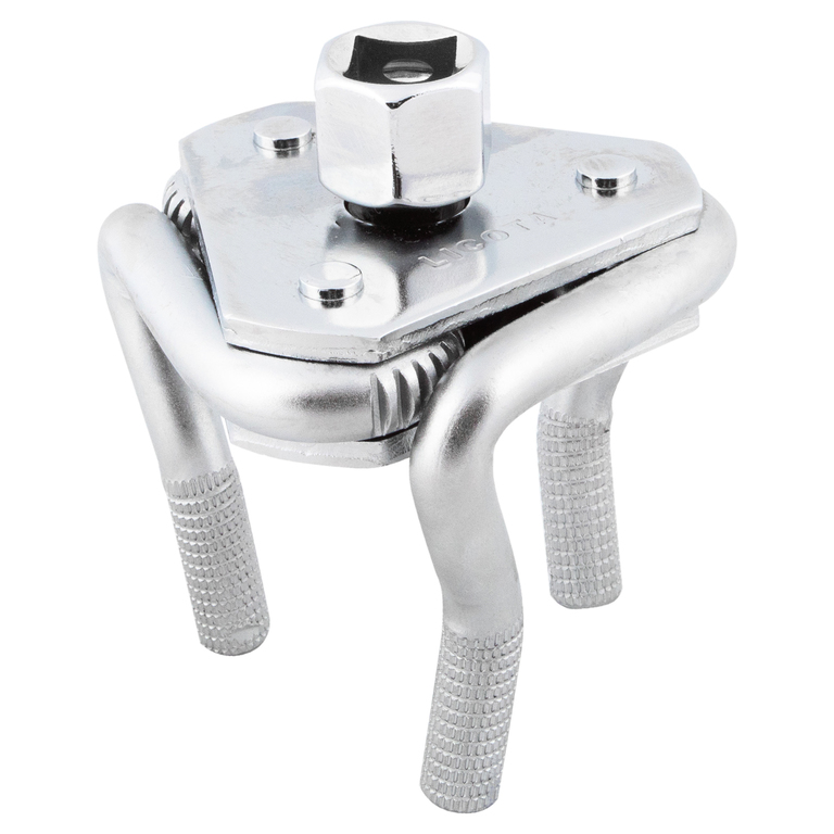 Съемник типа "краб" Licota ATA-0252A для демонтажа масляных фильтров. Для демонтажа необходимо установить инструмент на фильтр, затем, вращая ключ или трещотку, закрепить съемник и снять фильтр.