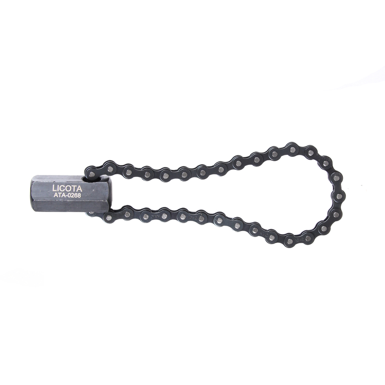 Съемник масляных фильтров цепной Licota ATA-0268 для демонтажа масляных фильтров автомобильных двигателей. Состоит из привода и цепи.