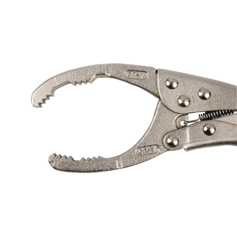 Съемник отличается высокой силой захвата благодаря применению в конструкции рычажного механизма. Специальные захваты на губках позволяют избежать проскальзывания и открутить даже сильно затянутые масляные фильтры.