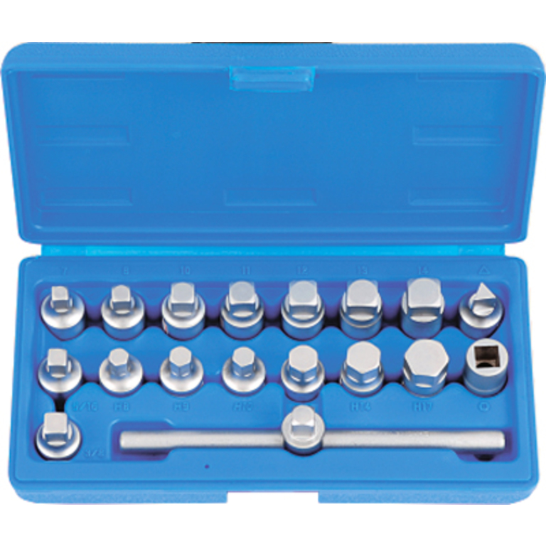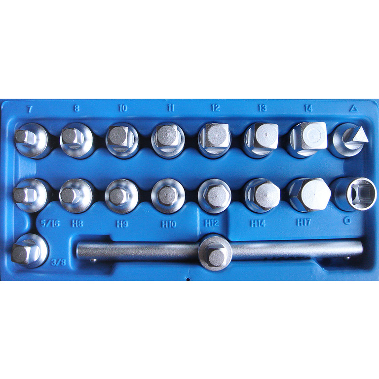 Набор головок для отворачивания масляных пробок Licota ATA-0401- набор специальных вставок для проведения монтажа/демонтажа резьбовых пробок сливных отверстий картеров при обслуживании автомобилей различных марок.