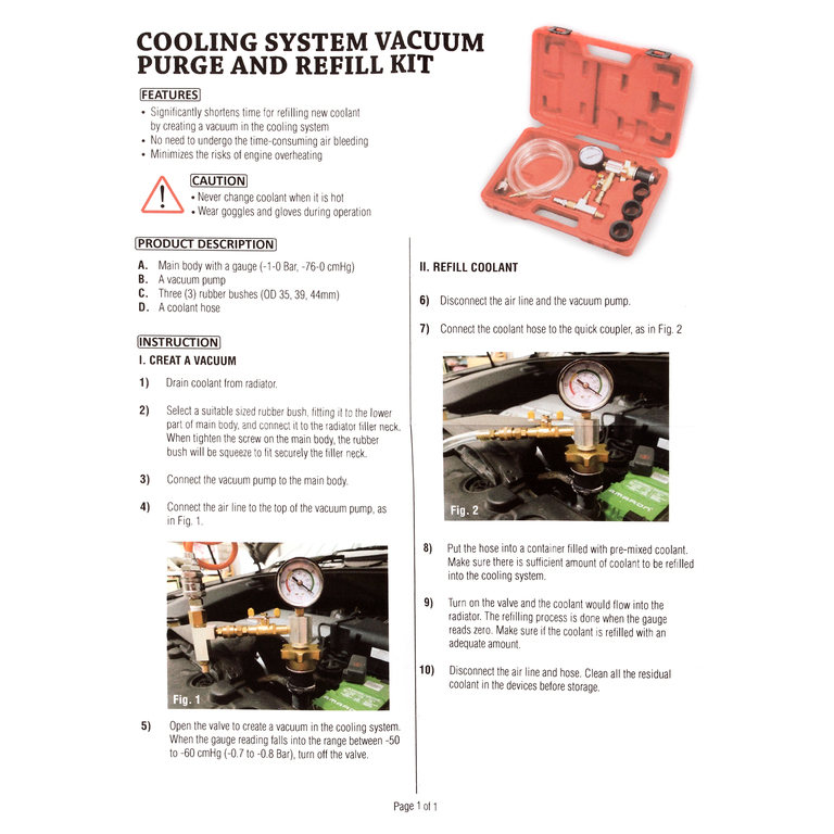 Позволяет быстро поменять охлаждающую жидкость, закачав в систему охлаждения новую из канистры. При заправке системы исключает попадание воздуха, что позволяет избежать плохой циркуляции жидкости.