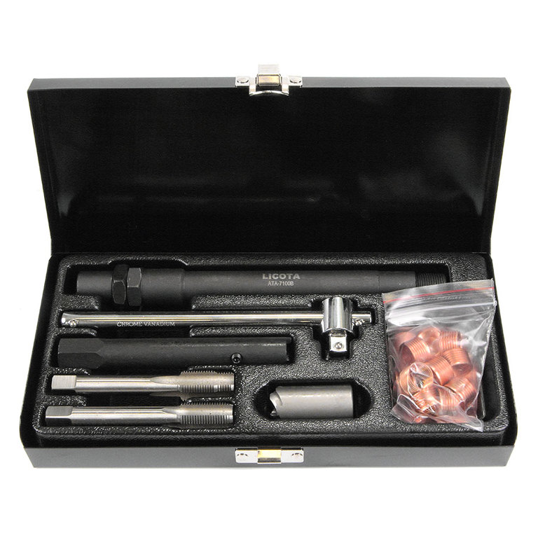 Набор Licota ATA-7100B предназначен для восстановления изношенной свечной резьбы в головке блока цилиндров.