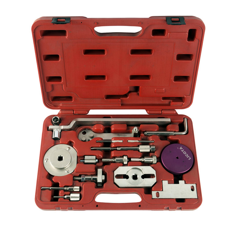 Комплект из 15 предметов в пластиковом кейсе содержит необходимые инструменты, которые могут понадобиться для установки механизма газораспределения или снятия ГУР.