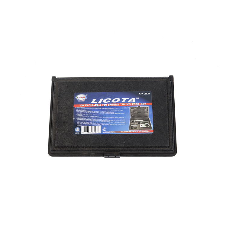 Набор фиксаторов для дизельных двигателей Licota ATA-2121 для автомобилей VAG группы с двигателями 2.4D и 2.5TDI. Комплект из 7 предметов в пластиковом кейсе.