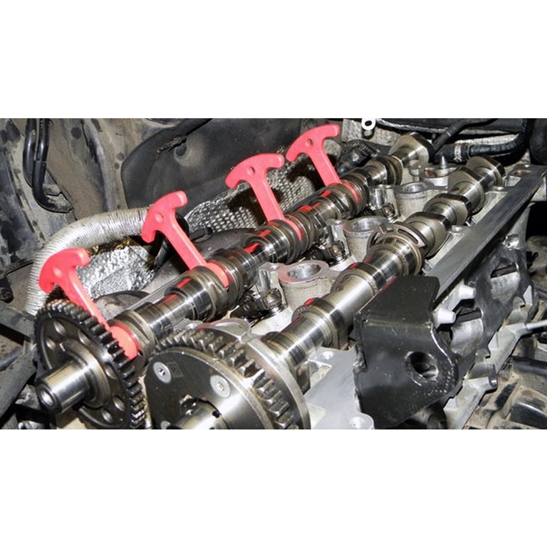Комплект из 5 приспособлений применяется для фиксации плавающих кулачков на распредвале выпускных клапанов.