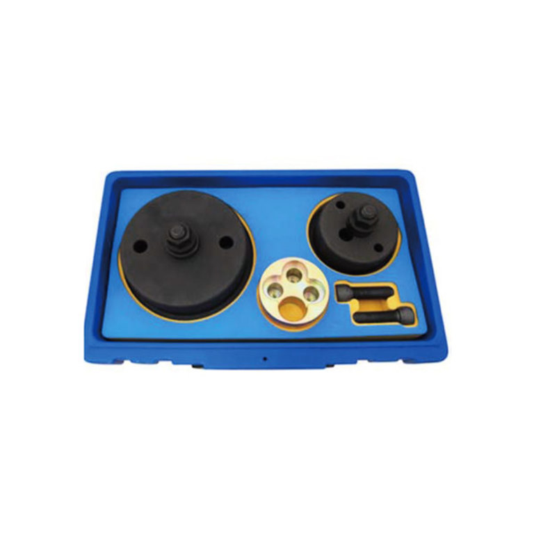 Комплект из двух специальных приспособлений в пластиковом кейсе предназначен для демонтажа/монтажа передних и задних сальников коленчатого вала.