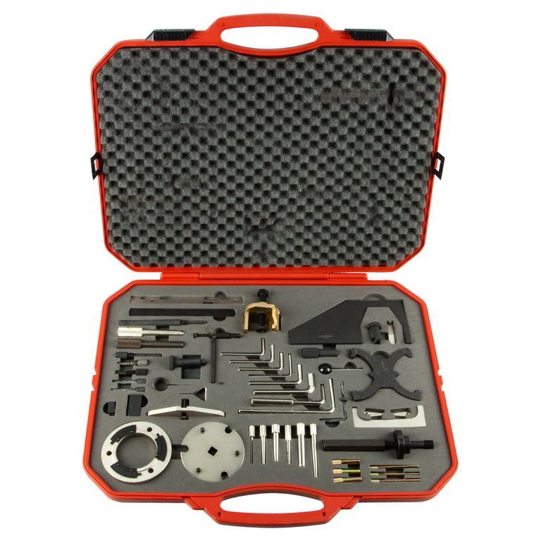В набор входят приспособления для установки фаз ГРМ как с цепным, так и с ременным приводом, а также настройки ТНВД как старых автомобилей, так и автомобилей свежих годов выпуска.