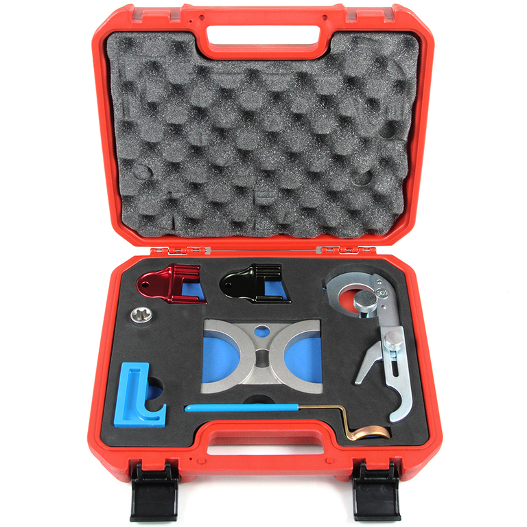 Комплект из 6 предметов в пластиковом кейсе предназначен для установки механизма газораспределения двигателя в правильном положении.