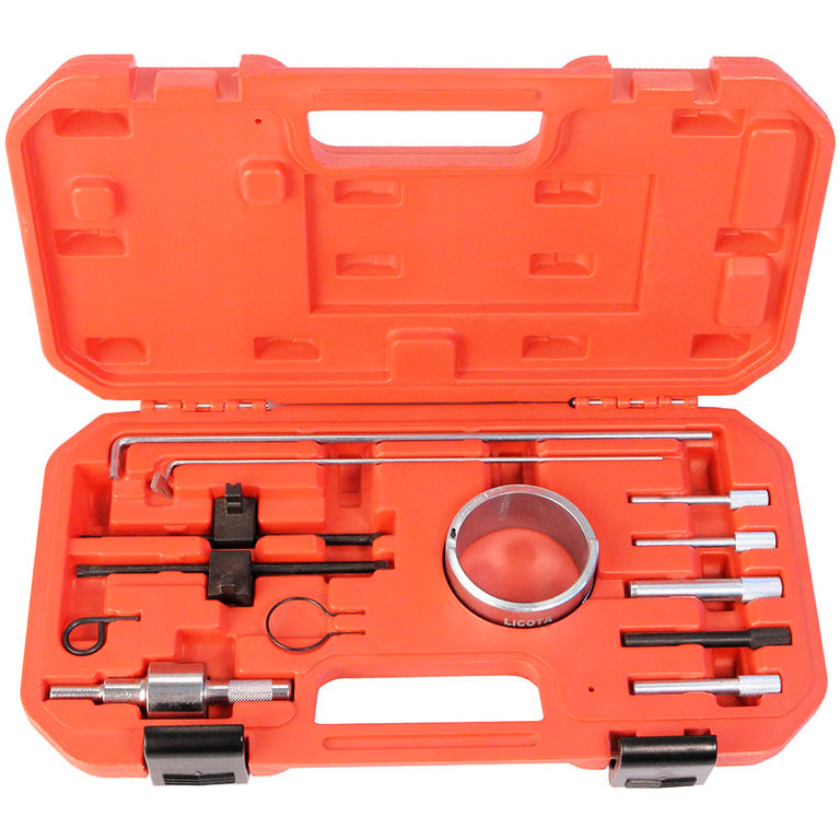 Комплект из 13 предметов в пластиковом кейсе используется для настройки и регулировки механизма газораспределения, например, после капремонта, или замене ремня ГРМ при плановом ТО двигателя.