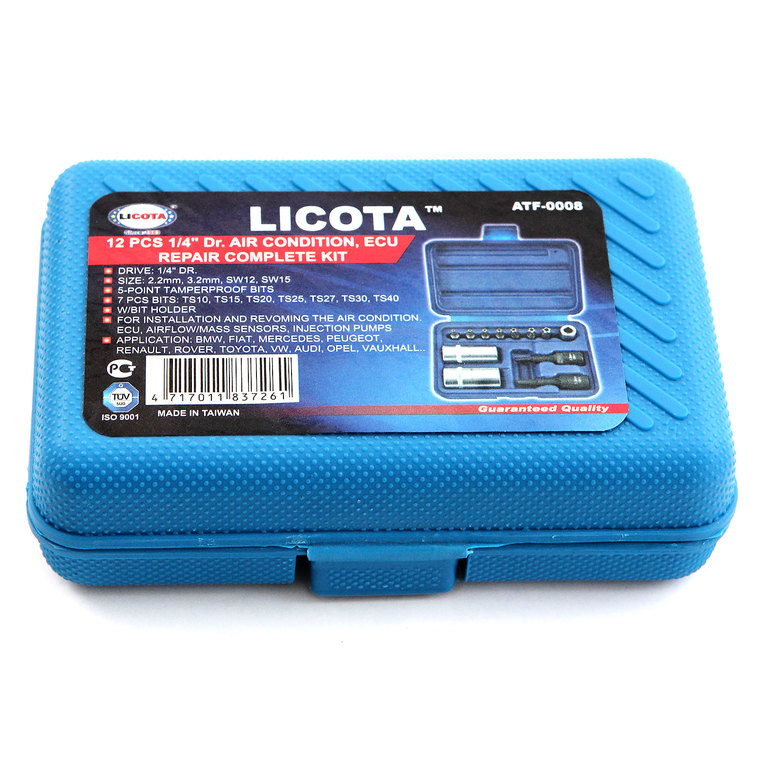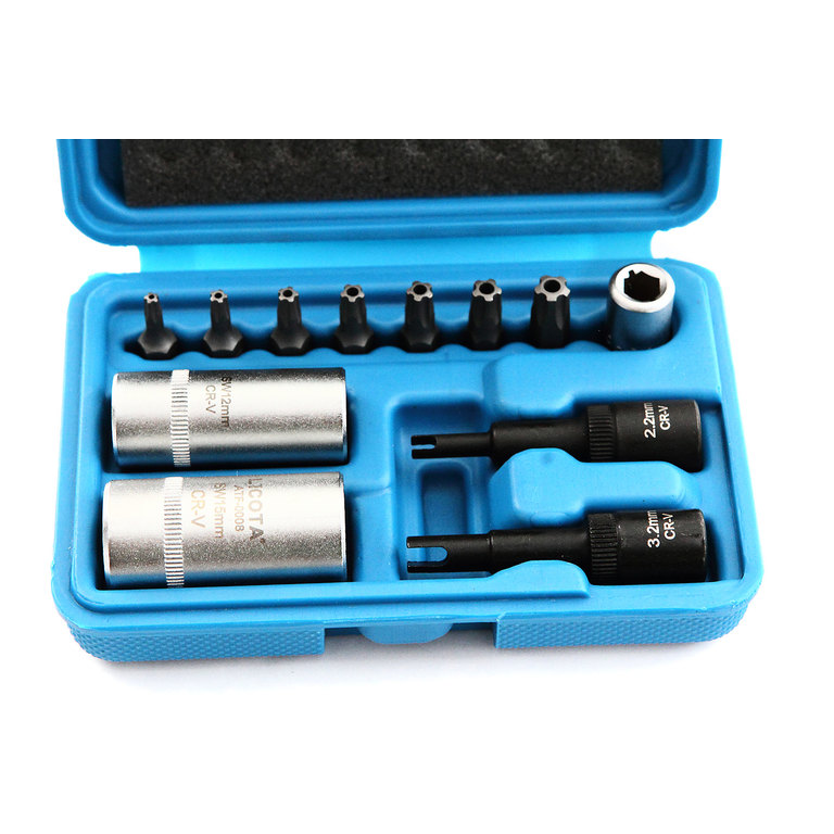 Набор головок для обслуживания кондиционера, ЭБУ двигателя и демонтажа датчиков используется для демонтажа спец винтов и штуцеров, расположенных в системе кондиционирования воздуха автомобилей VW-Audi, и демонтажа датчика расхода воздуха.Также данный инструмент применяется для разборки электронных блоков управления двигателем и для разборки топливных насосов.