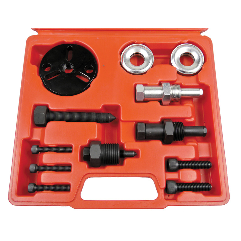 Набор для ремонта и обслуживания компрессора кондиционера Licota ATL-9097A применяется для фиксации при разборке и сборке муфты компрессора кондиционера, а также для замены уплотнений и сервисного обслуживания.