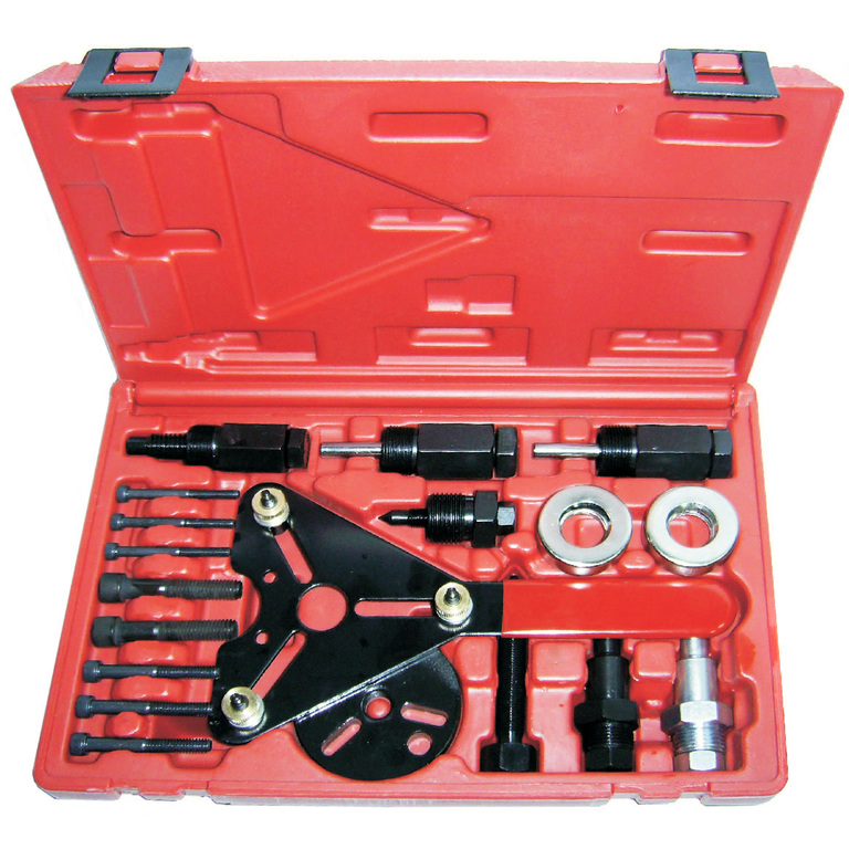 Набор для ремонта и обслуживания компрессора кондиционера применяется для фиксации при разборке и сборке муфты компрессора кондиционера, а также для замены уплотнений и сервисного обслуживания.