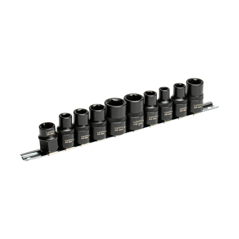 Набор из 10 специальных высококачественных головок LICOTA ATF-0019A предназначен для ремонта двигателей различных марок легковых автомобилей, поставляется на металлической линейке