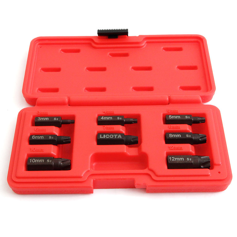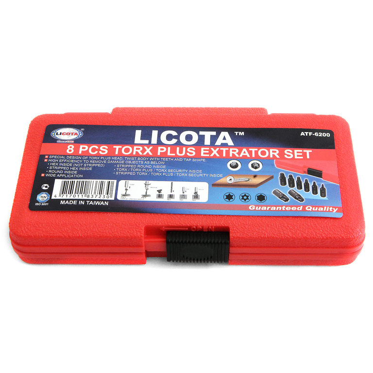 Набор бит-экстракторов Licota ATF-6200 применяется для отворачивания обломанных или "слизанных" болтов Torx, Torx plus, Torx Security.