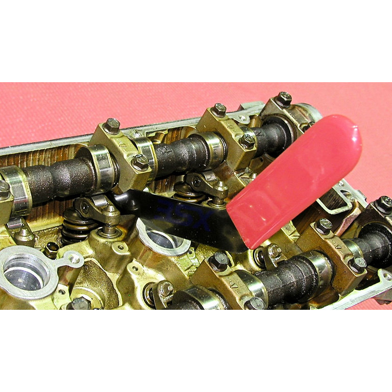 Инструмент устанавливается между распределительным валом и верхней тарелкой клапанной пружины. Клапанная пружина сжимается и освобождает рокер клапана, который демонтируется, после чего извлекается гидрокомпенсатор.