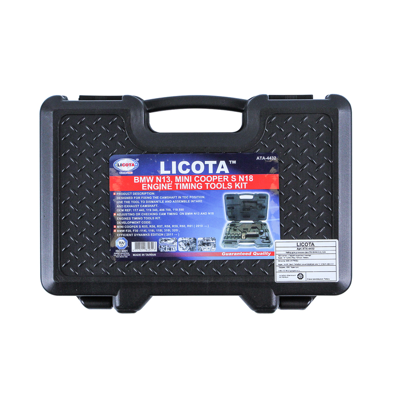 Набор для установки фаз ГРМ Licota ATA-4432 используется для выставления фаз ГРМ на автомобилях MINI COOPER с двигателями модификаций N13 и N18.