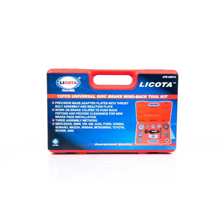 Комплект для развода поршней тормозных цилиндров Licota ATE-4087A предназначен для быстрой и безопасной установки тормозных колодок.