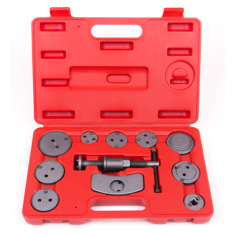 Подходящая по размеру чашка вставляется в суппорт и выжимает тормозной цилиндр. Комплект из 11 предметов поставляется в пластиковом кейсе.